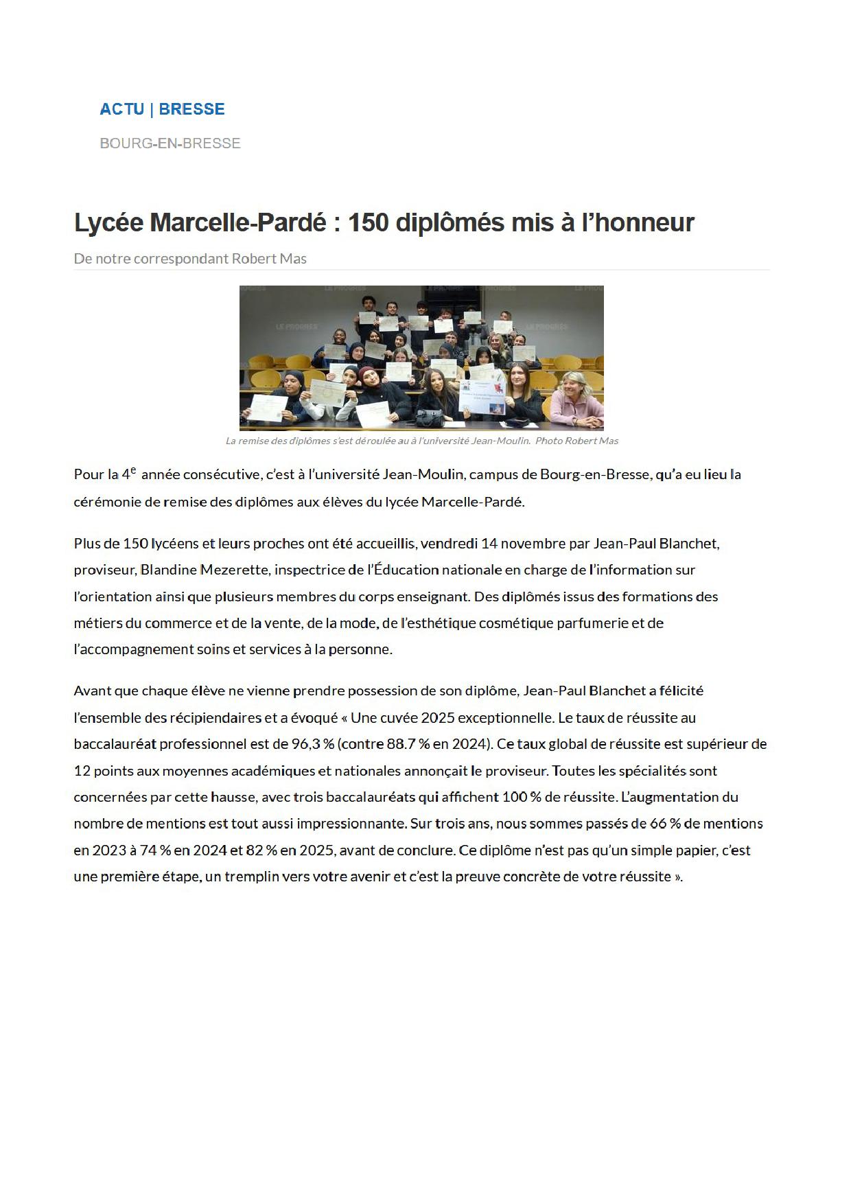 La cuvée des examens en 2025 au lycée Pardé est particulièrement exceptionnelle et place l'établissement 12 points au-dessus des moyennes académiques et nationales.