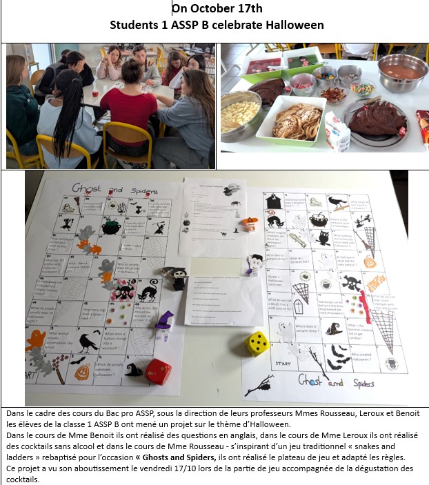Dans le cadre des cours du Bac pro ASSP les élèves de la classe 1 ASSP B ont mené un projet sur le thème d’Halloween.